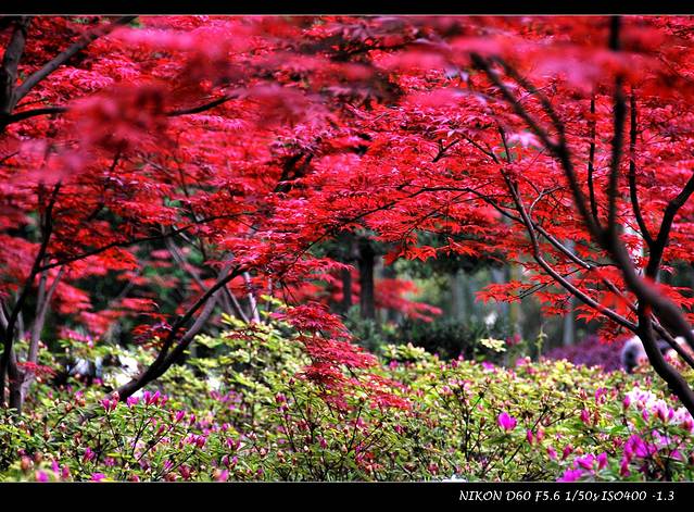 看到这满眼的枫叶,会不会让你想起帝都郊外香山上那漫天的红?——这里是青山公园,只是一座身处闹市的老牌公园,也许很多武汉人从来都没去过这个公园,甚至从来也未曾听说过这个名字,但这并不妨碍它在春天给我们带来惊喜。
