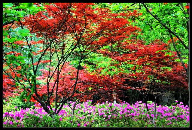 当杜鹃遇上红枫,便是真正的姹紫嫣红