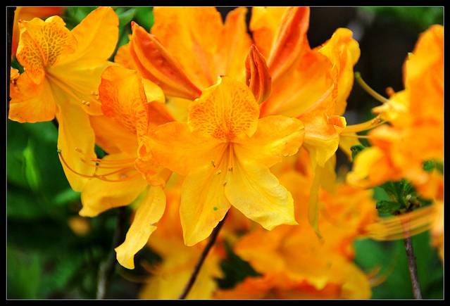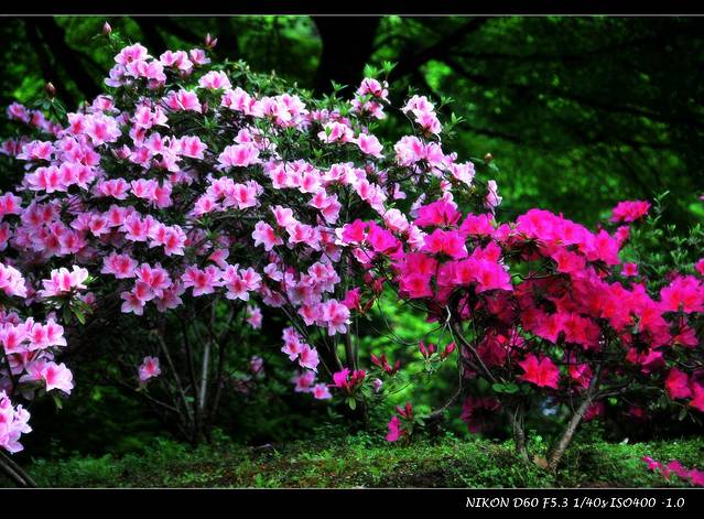 青山公园在每年春天都会举办杜鹃花展,久而久之,也就形成了一定的规模,展出的杜鹃花品种和数量都是其它地方无法企及的,每年春天慕名而来赏花的人也是络绎不绝。公园内绿化非常好,随处可见参天的古木。绿树、红枫,还有五颜六色的杜鹃花,这场景仿佛就像一幅浓墨重彩的工笔画。