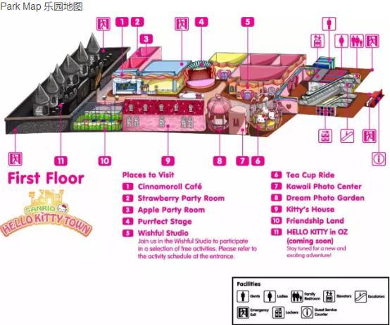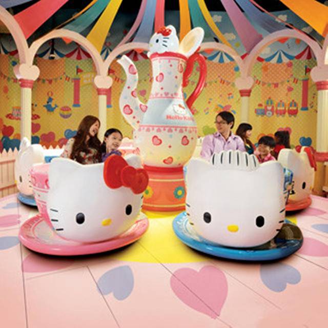 Hello Kitty主题乐园又分为9大区域,包括游乐场与旋转大茶杯、冒险迷宫、cafe和纪念品店。在Wishful Studio可以亲手打造纪念品,例如曲奇、珠宝制作和美甲沙龙。