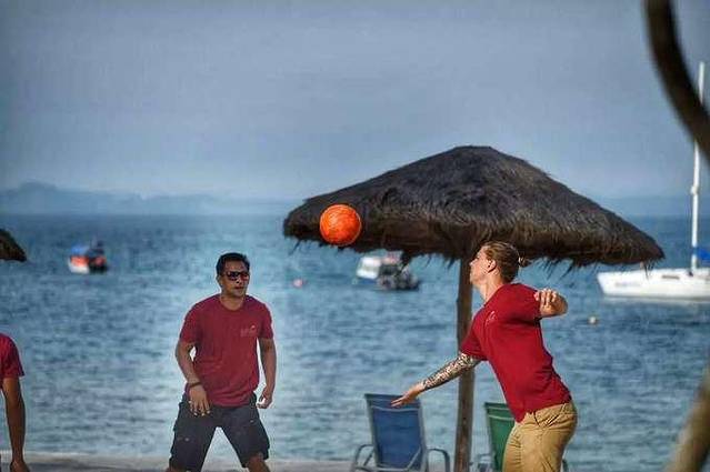 在自由活动的时候可以来打打沙滩排球,体验一把别样的球类运动。