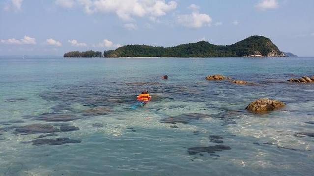这就是马来西亚柔佛州海洋公园众多岛屿中的一个,名叫“诗巫岛”,岛上有沙滩、丘陵、悬崖峭壁,这是一个还未遭到破坏的热带岛屿天堂。