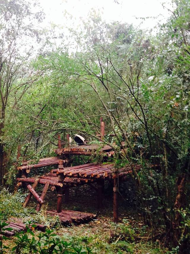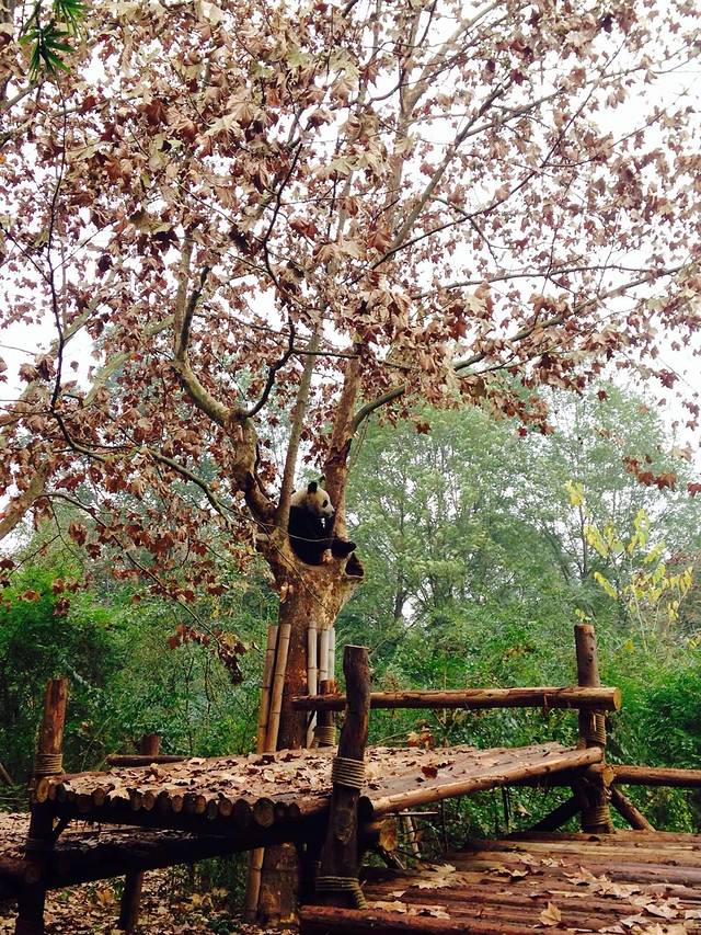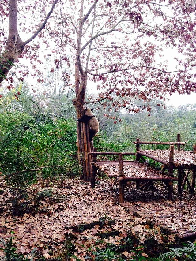 又看到一只大熊猫,在树上哟