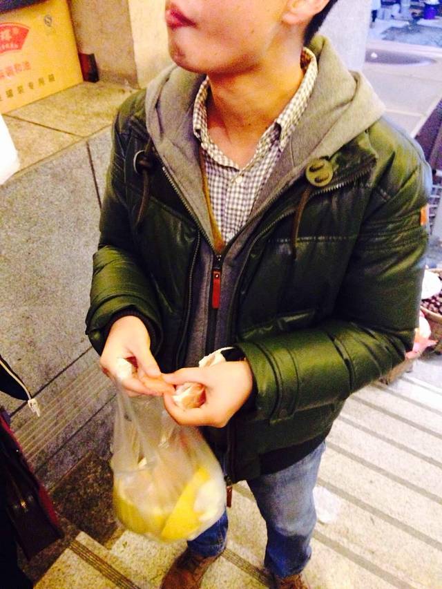 这人已经饿到去买柚子吃了…