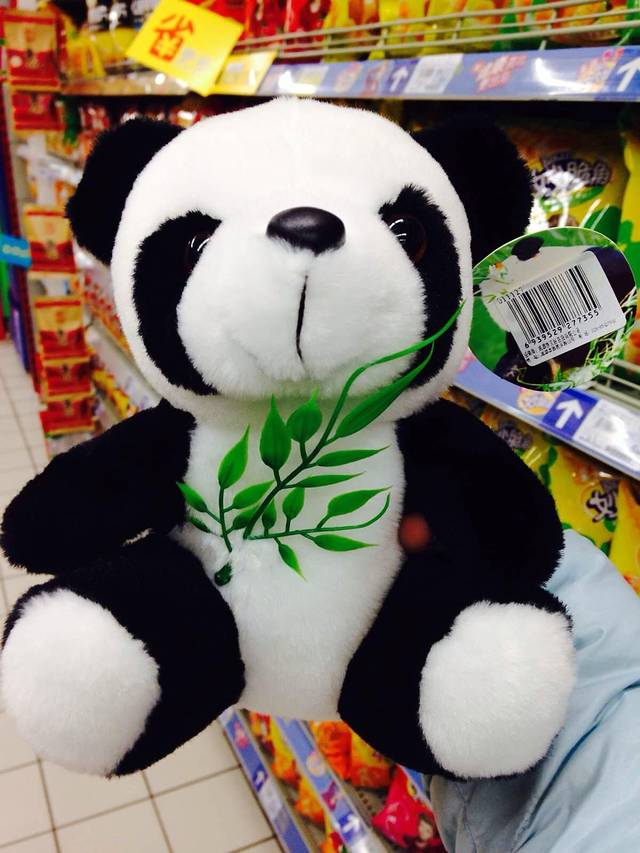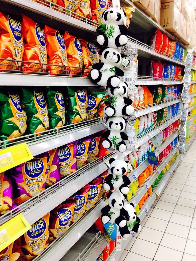 吃完又打车来到家乐福买东西,连超市都到处是熊猫啊