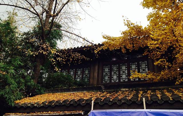 一风吹得银杏落,雨打屋檐尽深秋