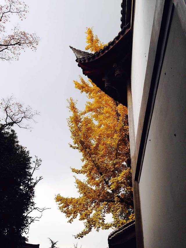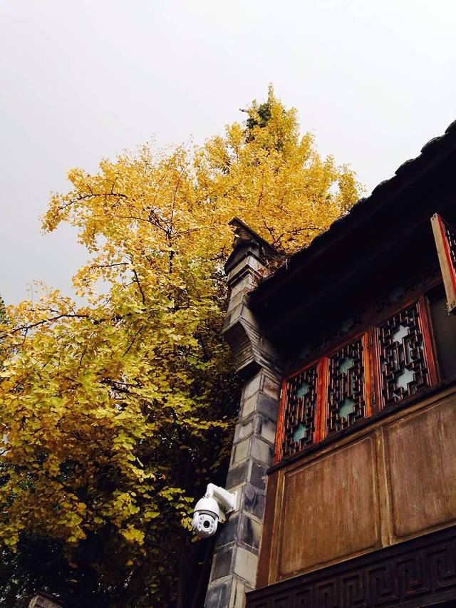 灿烂的银杏树,与仿古建筑很搭