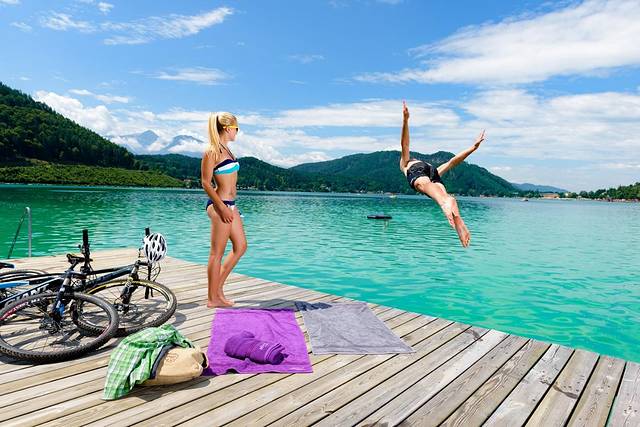 无论是在喧闹的Seelach还是在清静的Unterburg或图尔纳湖(Turnersee)湖畔,您将在克恩顿州南部度过丰富多彩的假期。露营爱好者会在格色尔多法湖(Gösselsdorfer See)和皮尔克多法湖(Pirkdorfer See)之间发现世外桃源般的自然美景。阿尔卑斯山南麓的气候温和,正是游泳的好天气,人们往往从五月初到九月底都能下湖游泳。