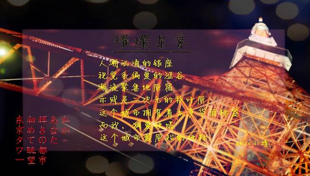 虽然是一首感伤的情歌...却有着唯美的画面...而此刻,我想我是幸运的...因为在东京铁塔的第一次眺望,我们是两个人,完成了属于我们的梦想...