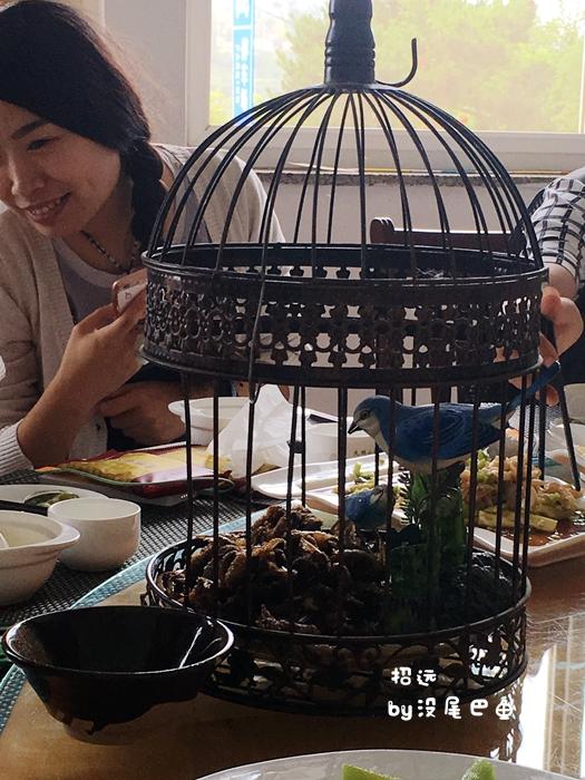 不卖关子,赶紧将特色菜亮相。就是上图中的这道菜,当地人叫“蛾”。实际就是炸一种虫子,有点儿类似炸知(ji)了(niao)猴(没完长成为知了的虫子)。虽然菜的装饰很赞、小鸟一震动还能发出悦耳的鸣叫。小伙伴们都说这是高蛋白,但是、但是!我还是难以接受。