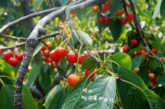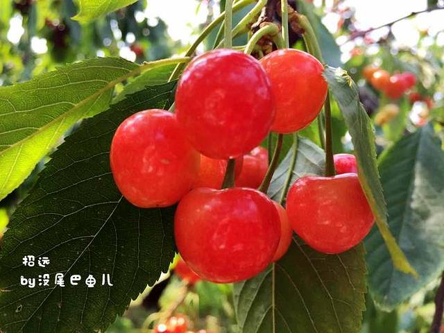 这大颗大颗的果实,看着就特别垂涎欲滴。我记得多年前梁咏琪的MV新鲜,就是在樱桃树林拍摄。(不小心暴露了年龄)