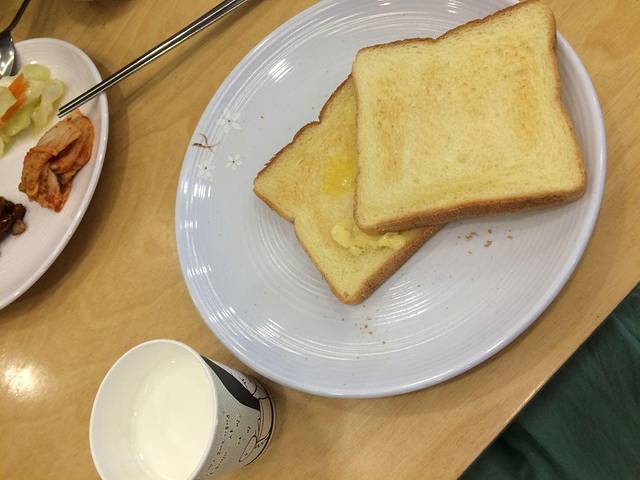 豌豆爸爸吃的小菜和粥,我吃的牛奶+黄油吐司,酒店的自助早餐还不错,不过我只有吃到这一天,之后的3天都因为各种各样的原因,没吃成,伤心!