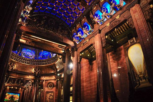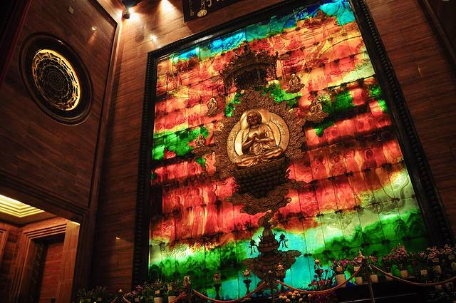 步入梵宫,浓郁的文化气息扑面而来。东阳木雕、敦煌技师的手工壁画、琉璃巨制、扬州漆器、油画组图、景泰蓝须弥灯、景德镇青花粉彩缸、瓯塑浮雕壁画,这些艺术珍品在灵山梵宫各区域演绎着优秀的传统文化。