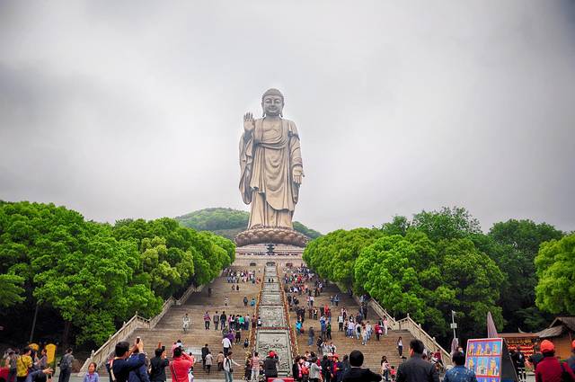 无锡灵山大佛因立在唐玄奘命名的小灵山上,作为目前世界上最高大的露天青铜释迦牟尼立像,包括莲花座在内通高88米,相当于一栋30于层的楼房。因技术难度之高和工作量之大盛况空前,可抗抗风、防震、避雷等。