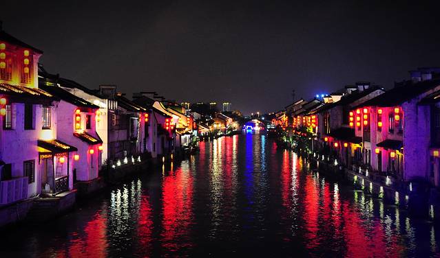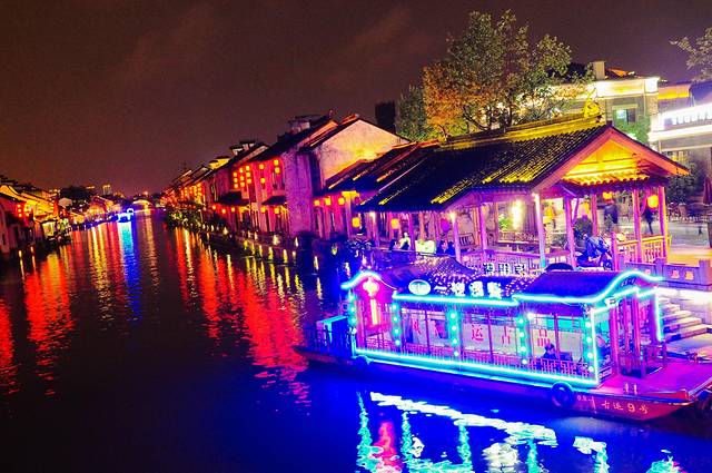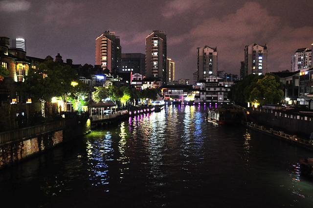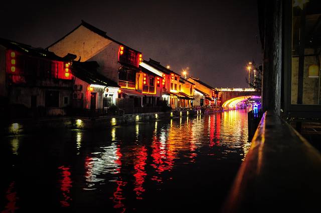抵达时正是晚上,天空开始飘起了如丝的细雨。夜色的灯火迷漫,投影在河里涟起阵阵波澜。烟雨朦朦的小桥流水人家,古色古香的南长街里。时不时传来咖啡的浓香,与酒吧热闹的音乐。那是一种柔美的画意,缠绵的诗意。