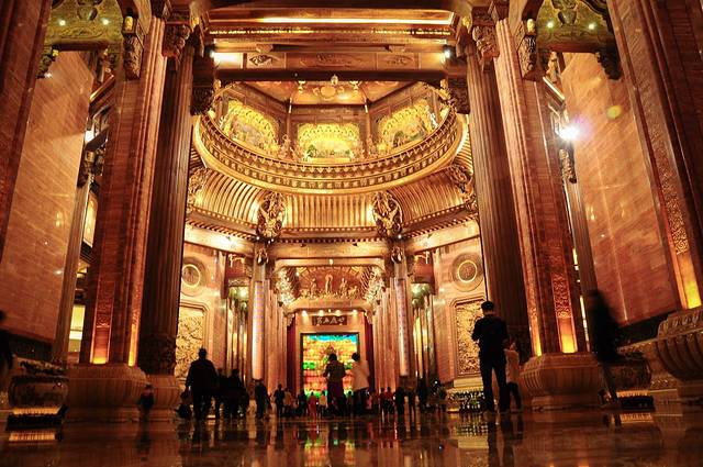 到灵山一定不能错过的梵宫,进入高大的廊柱,高耸的穹顶,体现佛教的博大精深浴崇高,传统庙宇与现代殿堂的结合,感受庄严与辉煌。