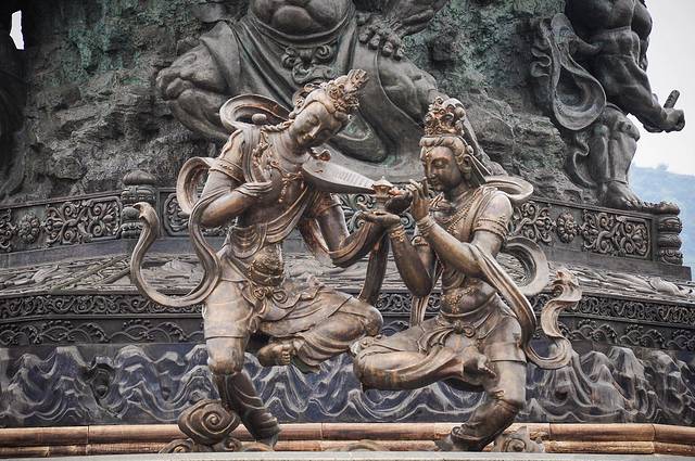 大佛右手指天,称为“施无畏印”,那是大佛在为众生除去痛苦;左手指地,称为“与愿印”,那是在保佑众生平安快乐。庄严安详的大佛,时时刻刻都在祝福游客呢。