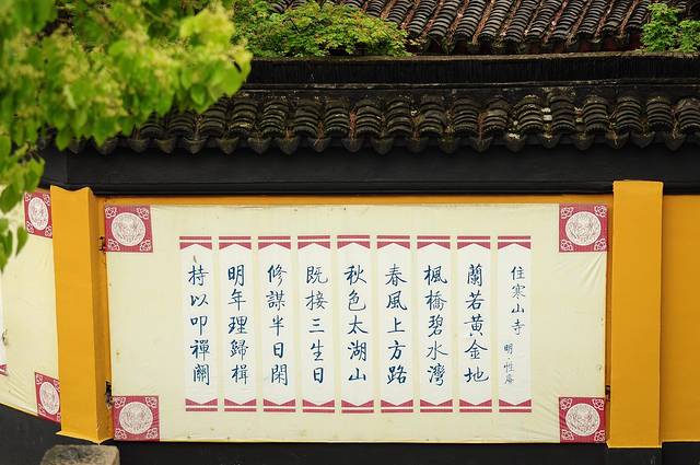 ——寒山寺,寺院明亮的黄围墙,想起皇帝的黄袍,漫步寺院中,感受浓浓的佛家文化。晨曦的钟声,一阵阵传来,余音袅袅,不绝如缕。心,一下子就沉静下去,仿佛被抽空的感觉,一下子拂去了许多的浮躁,我想这就是佛的力量。