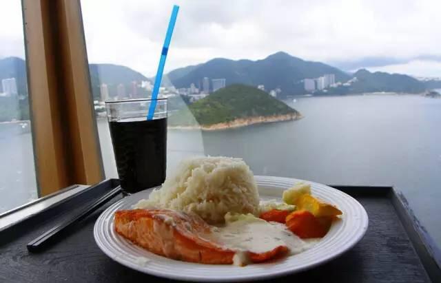 4、湾景餐厅(地点登山缆车旁,位于山顶,三面环海,风景一流,有沙拉、凉菜、餐汤、面条、米饭快餐、烤肉等)。