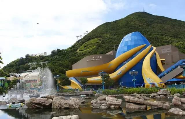 这是一个以海洋为主的大型主题公园,玩耍时我主要把它分为山上刺激的机动游戏区和山下比较悠闲的参观游览区,官方叫高峰乐园和海滨乐园。山下和山上以登山缆车和海洋列车2种交通连接。去之前可以上海洋公园的官网查询到所有相关信息,也可以关注他们的官方微信公众号,方便随时随地查询。