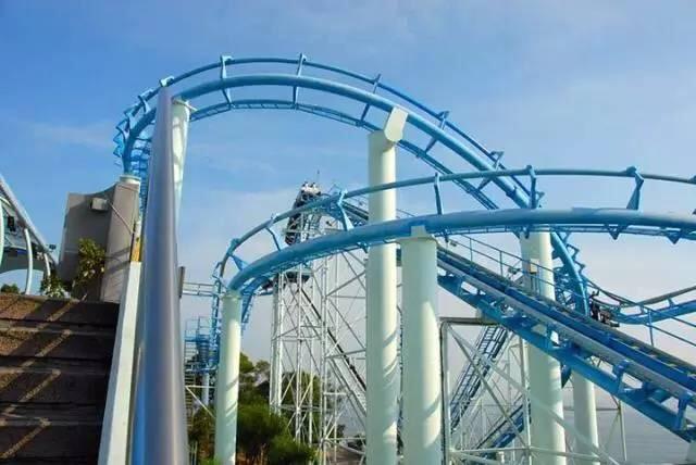 这个过山车在山顶最高处,翻仰时候可以看着海景,对准大海极速俯冲,超刺激。