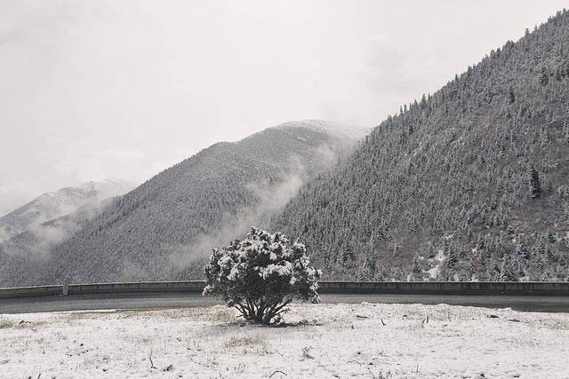 从到达稻城亚丁的第二天开始,雪就没有停过。回程时几乎整个川藏线都在下雪。路况差得车速比跑步还慢,更何况沿途要翻四座海拔四五千的山,若不是有雪景看,我可能就要哭了。