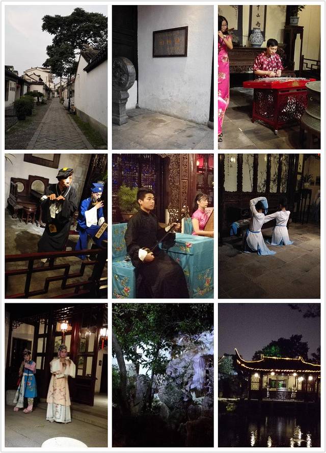 网师园推出夜游,19:30-22:00,门票100元。主要是准备了一些小节目,在游园的时候可以欣赏节目,感受一下传统文化。游园时有导游带队,导游身穿旗袍,有外国人时,还会提供英语讲解。游园时到不同的地方有不同的节目。有评弹,昆曲选段,古琴演奏,水袖舞,好像共7个节目吧。不过每个节目都比较短,就几分钟吧,感觉兴致刚来就结束了。