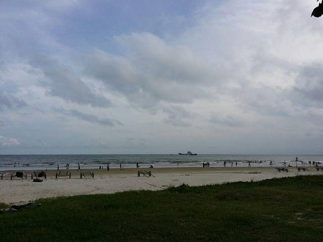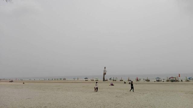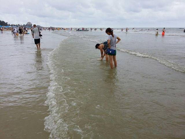 不得不说,北海银滩真的很适合带小朋友去玩,沙子很细,很干交净,踩上去软软的。第一次见到大海的嘟嘟还满兴奋的。一个劲的在挖沙子,开始我还害怕他把沙子往嘴巴里送(这种拿到什么都往嘴里送的年纪,大家懂的),但是他的表现真的很出乎我的意料之外,玩沙,只是挖坑,或是把沙子抓到一边去。玩水也一点不怕,还一个劲的蹬水。玩了一个半小时,把他抓上来,用保温杯的热水给他冲洗了一下(海水很咸,所以不能玩太久,而且出了水最好是马上简单的冲洗一下,把衣服也换了)。再给他喝了点水,赶紧去找吃的。