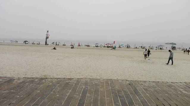 在前台问清了海边的方向,就直奔海边了,事实证明,不推婴儿车(怕麻烦,就只带了个腰櫈),带个娃,真是不明智的选择。