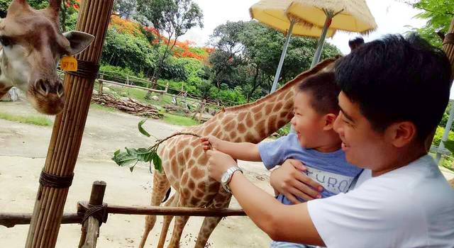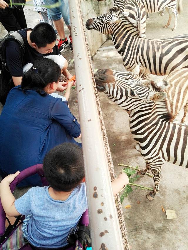 去到下一个景点,儿子拿着吃剩的树叶来来来。斑马要吃胡萝卜,谁鸟你。