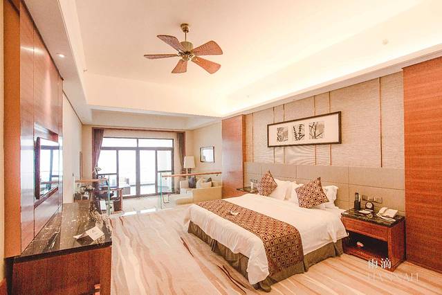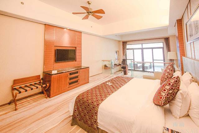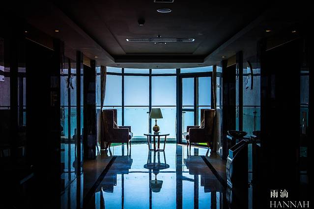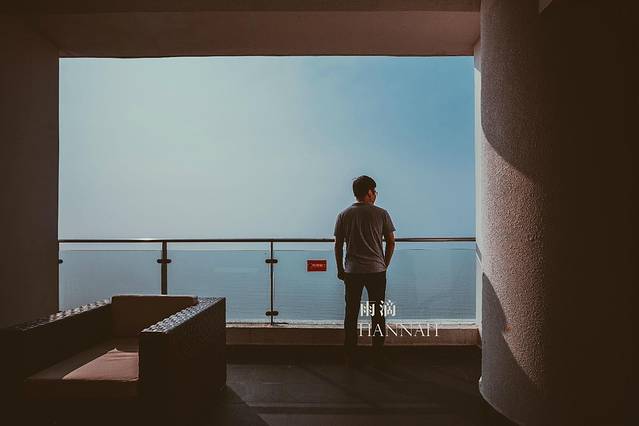 电梯前的落地窗一改普通酒店电梯前室采光差的缺点。一览无余的大海让你丝毫不会感觉到等电梯是一件让人厌烦的事情,坐下来欣赏一下远处的海景,也许就不想走了。