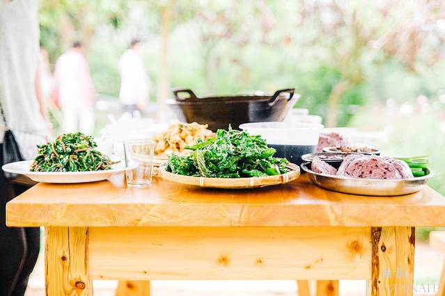 没用多等一道道特色的农家菜就上桌了。简单质朴的木头桌子,置身于桑葚树之中。还有简易的木头草席搭起来的小亭子提供阴凉。这简直是最完美的午餐搭配。