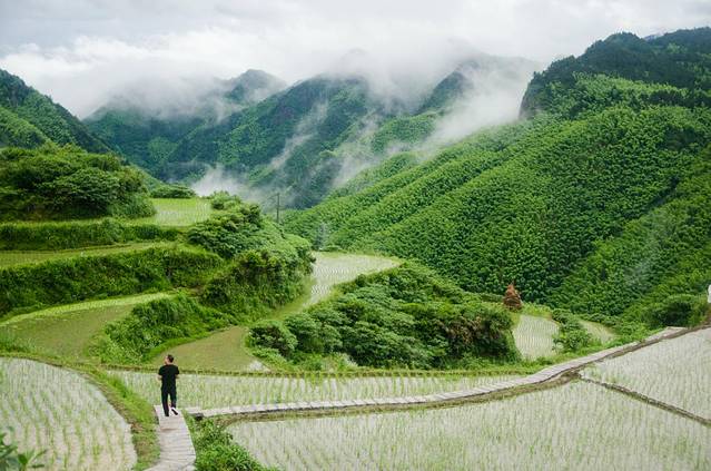 雨过天晴的高坪梯田宛如人间仙境呀!云雾妖娆的云海与青色如洗的稻田以及高耸起伏的山脉给人一种视觉的冲击挑战。这样的美在城市里实属难找,你要不要也来高坪看看雨后的梯田美景呢?