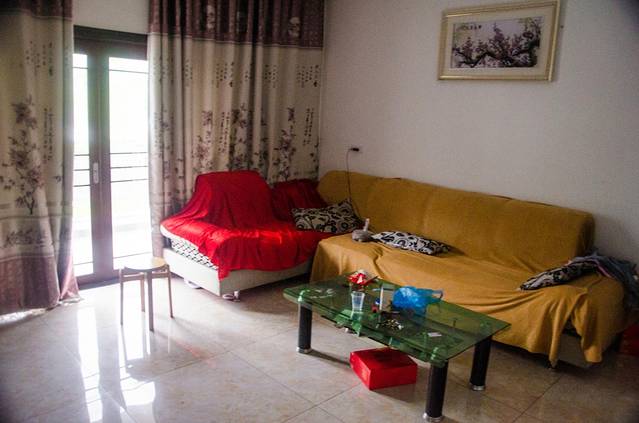 居住的客房里面的沙发,很明显的家庭气息颇浓。