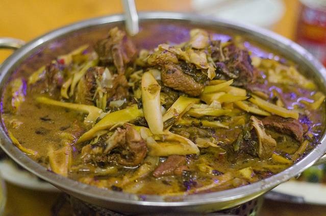 作为长江中下游地区的人民而言,竹笋是经常吃的一道美味,而且非常喜欢吃。这样的作法很普遍,但是已经不再正宗了,唯独来这里方可吃上真正的农家肉烧笋,看到了是不是想流口水了呢?