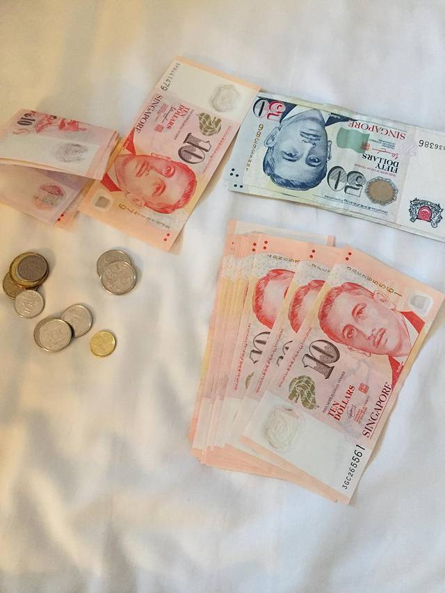 带了830新币合计人民币4000元,另外购门票和给旅行社的钱合计10000元人民币,总共花费14000元人民币。