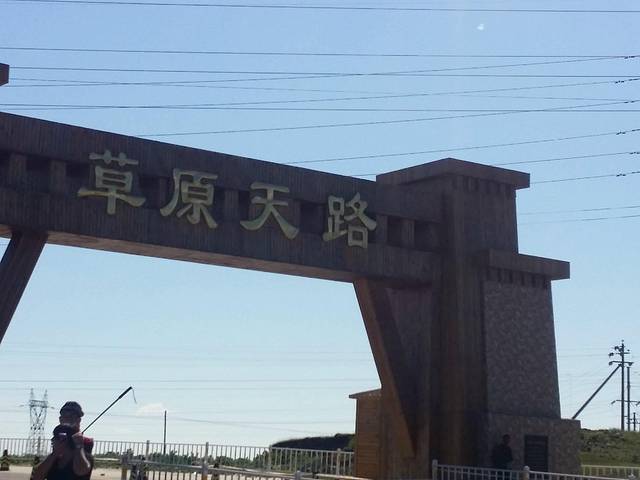 再开几分钟,见到这个大门,一个多月前还是收费的呦,现在免费了。由这里正式踏入草原天路,凉爽的风扑面而来,蓝天、白云、绿草再加上含氧量极高的空气让你非常放松。