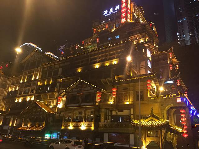 洪崖洞——悬崖上的吊脚楼,记忆中的老重庆,其以最具巴渝传统建筑特色的“吊脚楼”风貌为特色。有人称洪崖洞为“简直是千与千寻里的不思议之街”。洪崖洞分好几层,每一层都有一个主题,可以选择电梯上下也可以选择步行。像我这种懒人,肯定是选择挤电梯啦。O(∩_∩)O哈哈~ 交通:1. 搭乘轻轨2号线并选择【临江门】站的D出口,再步行前往洪崖洞;2.直接打的到洪崖洞;