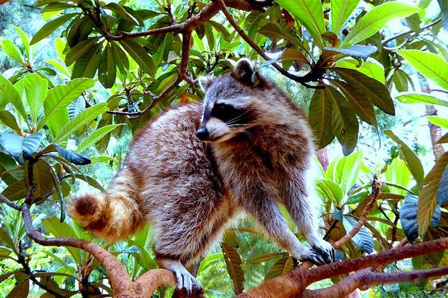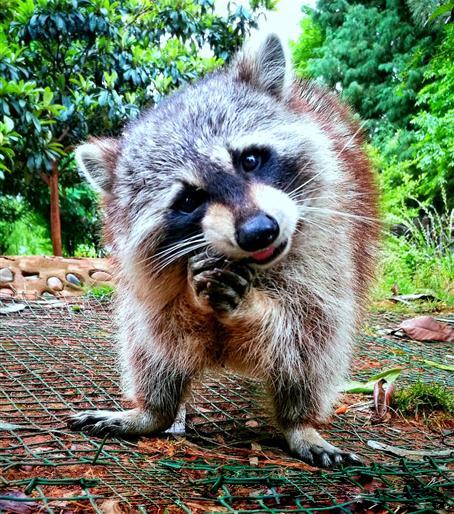 来到浣熊区,当我们拿着水果出现时一只只小浣熊看着我们手里的水果,开始还是羞答答的,一会就都屁颠屁颠的跑过来抢食物了。
