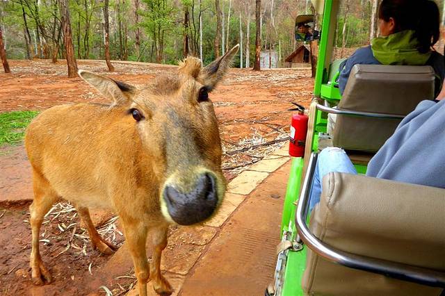 我想与动物最好的见面礼非食品莫属!不管是小猫小狗小羊小鸡,只要你拿上一些它们喜欢的食物,瞬间就是零距离。自然在充满奇趣的云南野生动物园里这个真理也是灵灵的。进到园子里按照饲养员人员的指示,手里拿着苹果香蕉或者胡萝卜,那些闪烁着萌萌眼神的小动物们就立即把你当成了最亲密的朋友,聚拢到你周围,那个亲密无间啊令人嫉妒。在一通狂喂胡萝卜后,立即与斑马们打成一片!
