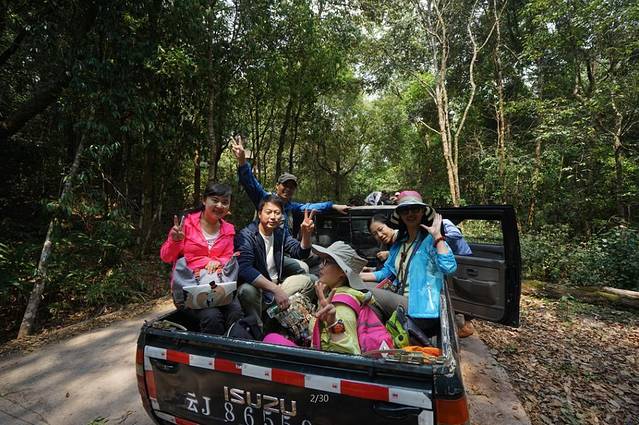 一大清早,领队带着我们坐在皮卡车的后面,颠簸着向森林驶去,森林幽静茂密,空气中弥漫着阵阵花香和植物的香气,耳边传来清脆的鸟叫声,一边走领队一边介绍说:太阳河国家公园原始森林覆盖率达94.5%,保存着中国面积最大、最完整的南亚热带季风常绿阔叶林,负氧离子含量极高,这里有着夏无酷暑,冬无严寒的宜人气候,是人间仙境、世间天堂。小伙伴们见了这绝美的自然,都异常兴奋,快乐的笑声回荡在山谷中。