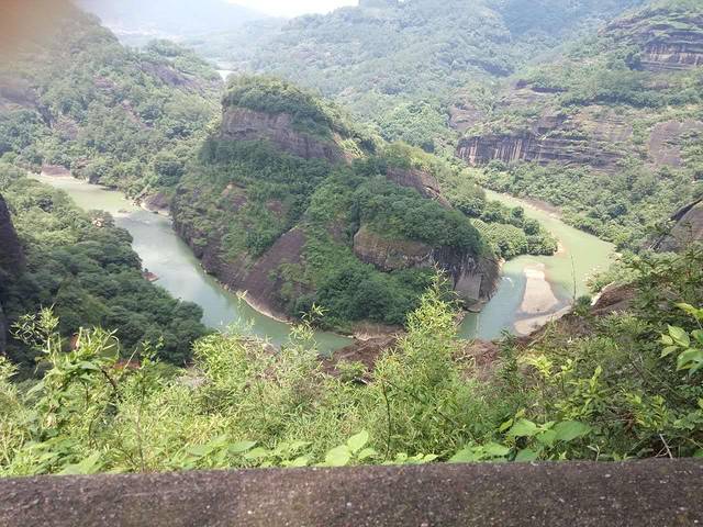武夷山第一天,在客栈老板的热心建议下,我们的行程安排如下:上午天游峰和桃园洞,下午九曲溪竹筏。可能还没有到旺季,入了景区游客并不多。这是我和小伙伴们都比较高兴的事儿。天游峰其实不算高,如果体能好,上山大概一个多小时。沿途可以看到山下边的九曲溪,景色很美。只是上山的沿途没有太多树木遮挡,需要做好防晒。下山倒是很舒适,有树木庇荫,山间空气清新。漫步来到山脚下的透天观,是个世外桃源。道观里边居住着一些道长。我们自行带了水和肉脯鱼豆腐,解决了午餐,觉得不便打扰道长们修行,又继续赶路。这里的景色,宁静祥和,是个修身养性的好地方。不知不觉穿过世外桃源来到了山下的景区环保车站。我们坐上了去九曲溪竹筏码头的车,开启了一个半小时的竹筏漂流之旅。我和小伙伴都是第一次乘坐竹筏,有点怕怕的。溪水很清澈,可见鱼儿。还可以把脚放进去,很清爽。两岸有峭壁,峭壁上有传说中的悬棺,顺着划船小伙儿的竹竿方向,我们清晰的看见高高的悬崖上小舟形状的悬棺。叹为观止。感叹古人是何等智慧,居然能将棺材放到悬崖峭壁上。竹筏漂流的终点站是武夷宫。里边有个宋街,就是仿古建筑,没有太多可看的。邮寄了几张明信片给小伙伴儿们之后,我们就结束了武夷山的第一天行程。晚上找了个干净的餐馆,吃了九曲溪红眼鱼,炒笋,茶饼。觉得茶饼还挺好吃,有茶香味儿。