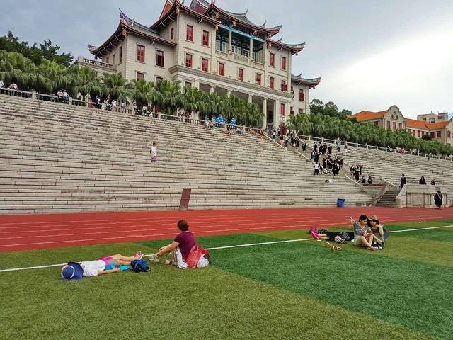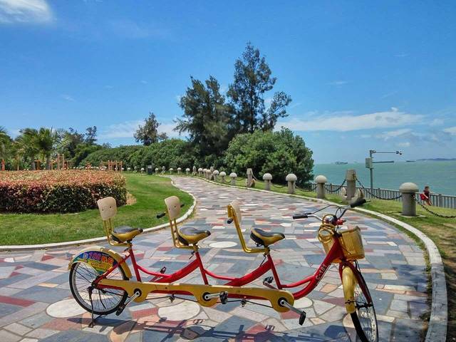 早上乘坐29路公交车,开往厦门大学西门,由于我的疏忽,下错了站,我们直接来到了环岛路。将错就错也不错。厦门的大海,跟大连的大海有很大的区别。海边撒个欢,租个三人自行车,开始环岛路骑行。在将近十分钟的探索下,我们仨终于掌握了三人自行车的开车要领。就是他俩先骑,我在后边推车助跑最后跳上去,这样方向容易掌控,不容易失去平衡。一路骑来,那叫一个拉风。到了曾厝垵附近,我们先还了自行车,再去海边撒个欢。然后上岸进村。曾厝垵就在环岛路马路对面,是个很小的村儿。几天繁华的街道,沿途是商铺。吃了传说中的沙茶面。名不虚传。出了村口,直接坐来时候的公交车,到厦门大学西村站(只有西门可以进游客)。游客走专门的游客通道,扫身份证即可入内。很人性化。因为是周末,厦门大学全天对游客开放。校园很美,正值毕业季,好多毕业生穿着学士服在照相留念。看上去,好羡慕,羡慕他们的青春岁月可以在这里度过。在人生中可以留下美好的青春记忆。厦门大学很大,我们也只是闲逛,并没有找到芙蓉隧道。但被感染了一下青春氛围,也并无遗憾了。
