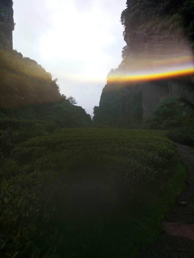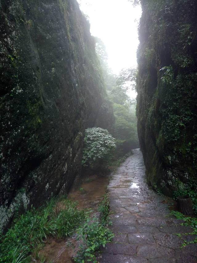 我们很幸运,在武夷山这两天赶上了晴天,阴天,下雨。从而体验到山间的不同景色和意境。这一天早上出门开始下起了蒙蒙小雨。我们入了景区(门票是两天通票),坐上大巴车先来到了虎啸岩,这段路还好,不是爬山,不累。其中有段路是在山上的岩壁凹陷处行走,根本淋不到雨水,而且由于下雨,山间云雾缭绕,真是美翻了。逛了大概一个小时多,来到传说中的一线天,的确很窄,只能容纳一个人通过。因为是在岩洞里,头上会有蝙蝠,地上还有他们的粪便。旁边有个导游还在讲,千万不要张嘴巴,否则可能会吃到蝙蝠屎。。。一线天很快就逛完了,大概只用了十多分钟吧。中午稍作休整后,我们进发到下一景点,大红袍。大红袍里边有大片的茶园,分布在景区各处。沿着大红袍一直向前走,可以到水帘洞。但是此水帘洞并非花果山的水帘洞那样壮观,只有一条细细的水柱从山上豁口处冲下。仅此而已。