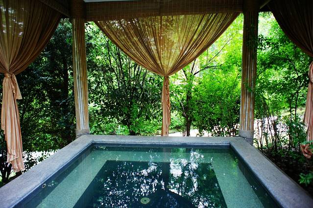 如果浮生能有半日空闲,揽一小小院落,用暖暖温汤拥满因奔波而疲惫的身体,头顶合欢花开正艳,李子红熟,沉沉压满枝头,伸手可摘。从天明到日暮,月兔初升;爱溢满温池,不思归去。