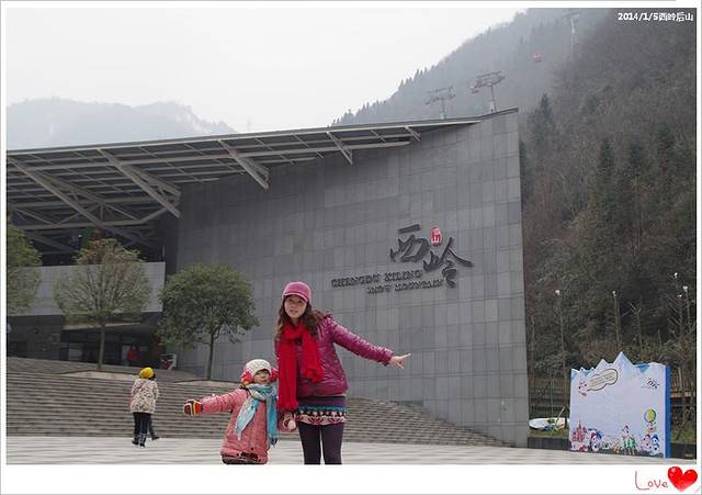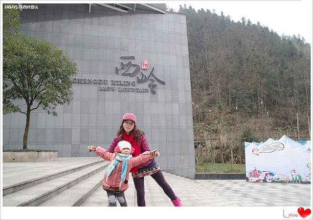下午三点终于抵达西岭雪山,乖麻和萌女在景区大门外留影纪念。