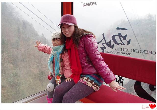 偶们在鸳鸯池索道滴缆车上,这是菲妹儿第一次坐缆车显得异常兴奋,麻麻赶紧叫粑粑拿出相机咔嚓卡擦。