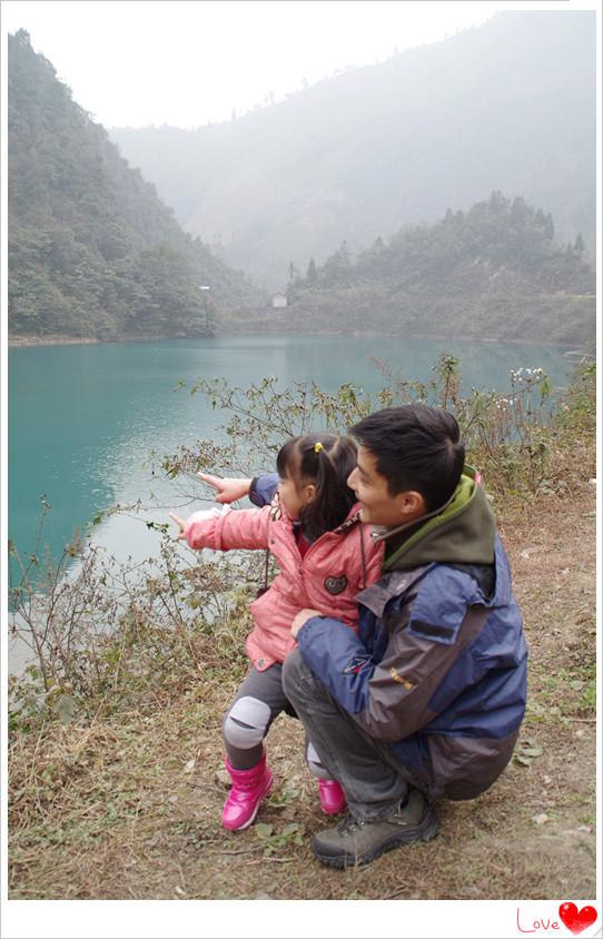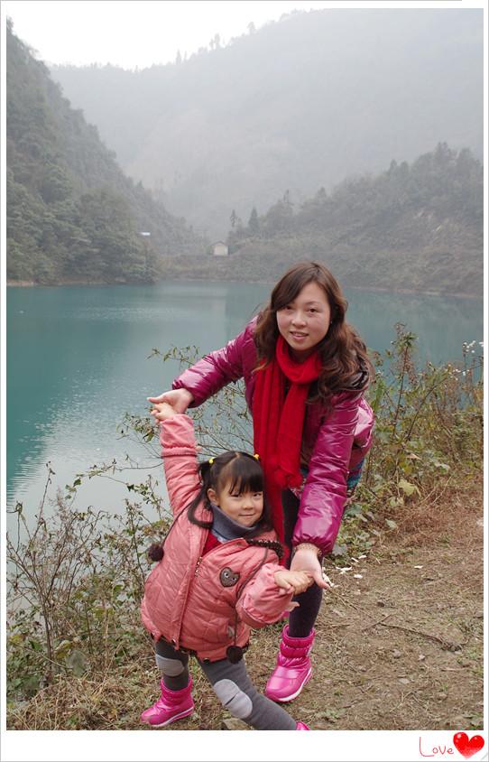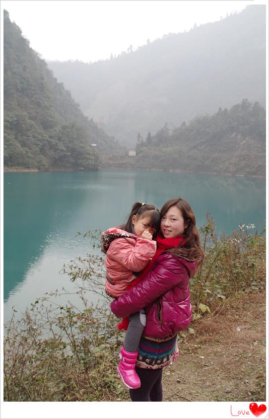 池中滴水碧蓝透明,晶莹剔透,十分漂亮滴景色。粑粑和菲妹儿都跟着麻麻下车来欣赏美景。