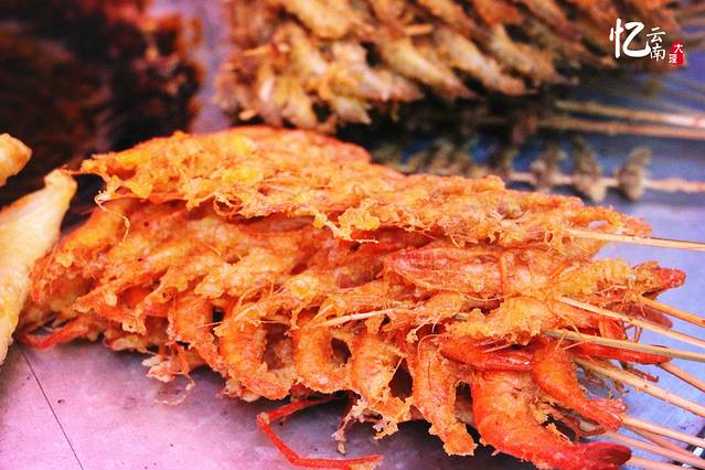 小虾串,老板说这些小虾都是洱海里野生的,味道真的很不错,香脆鲜美。