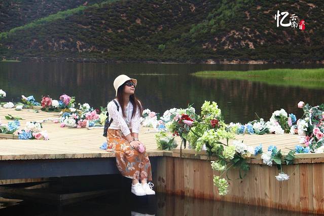 属都湖边,在等船。那些花不是鲜花,但是拍照取景不错。